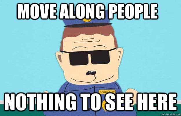 “Move along, people! Nothing to see here…”